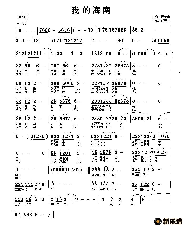 我的海南(又名:我的海南赛江南)/ 相关曲谱