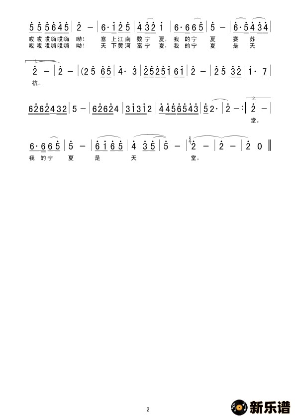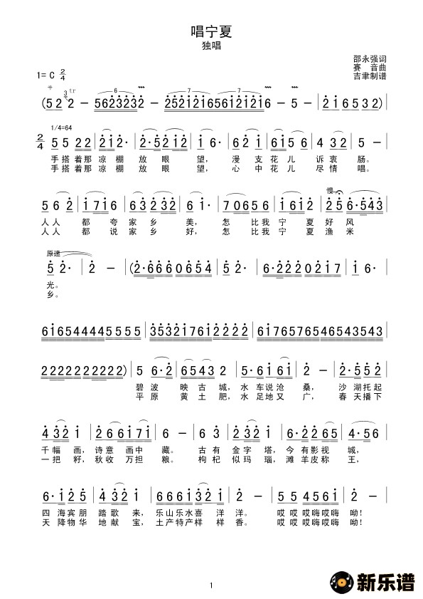 唱宁夏最新曲谱