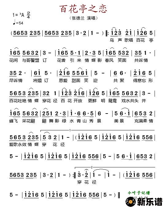 《百花亭之恋》简谱 张德兰-小叶子制谱