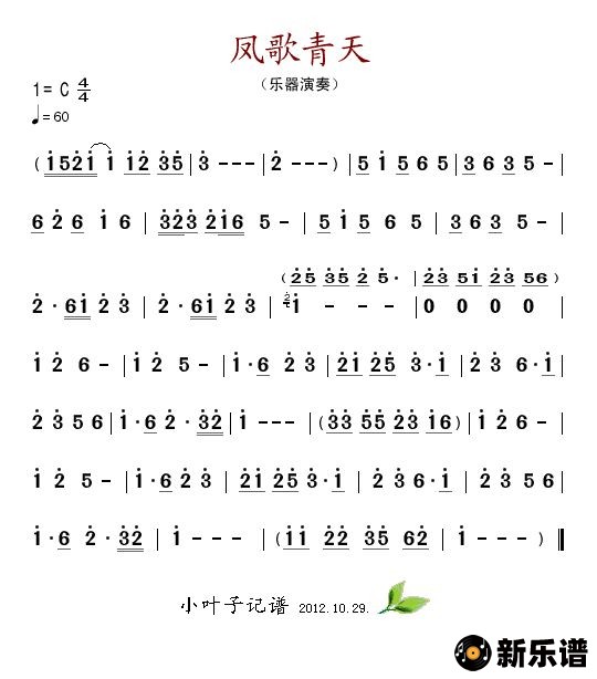 《凤歌青天》简谱 乐器演奏-小叶子制谱