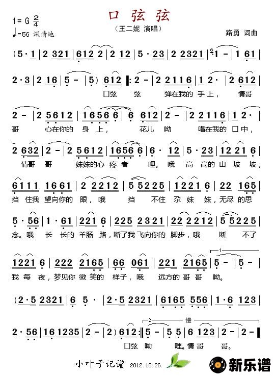 王二妮演唱的口弦弦歌词,口弦弦简谱.