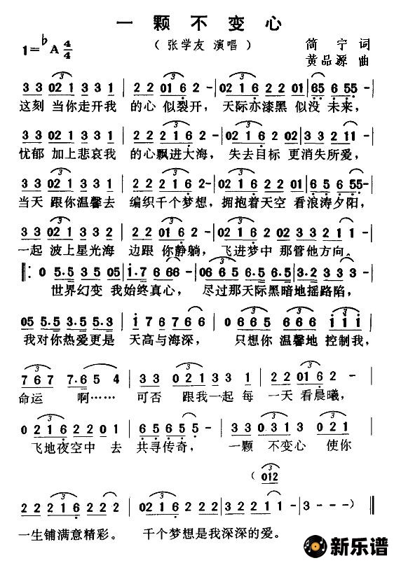 张学友演唱的一颗不变心歌词,一颗不变心简谱.