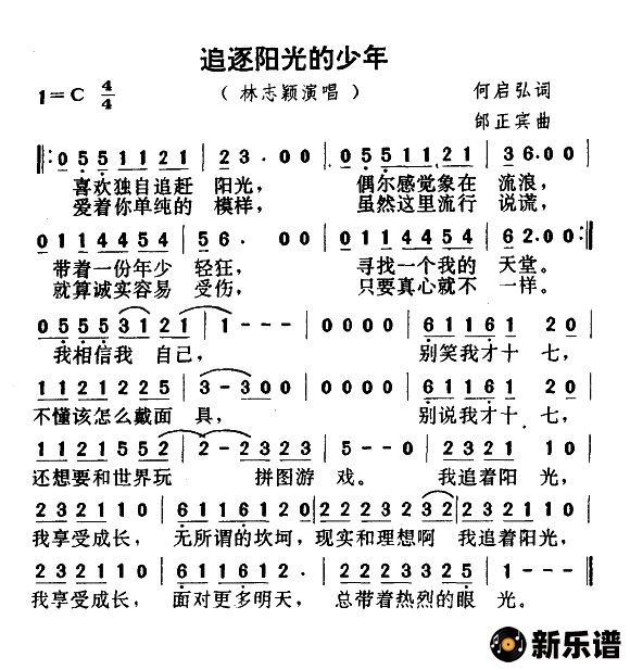 林志颖演唱的追逐阳光的少年歌词,追逐阳光的少年简谱.