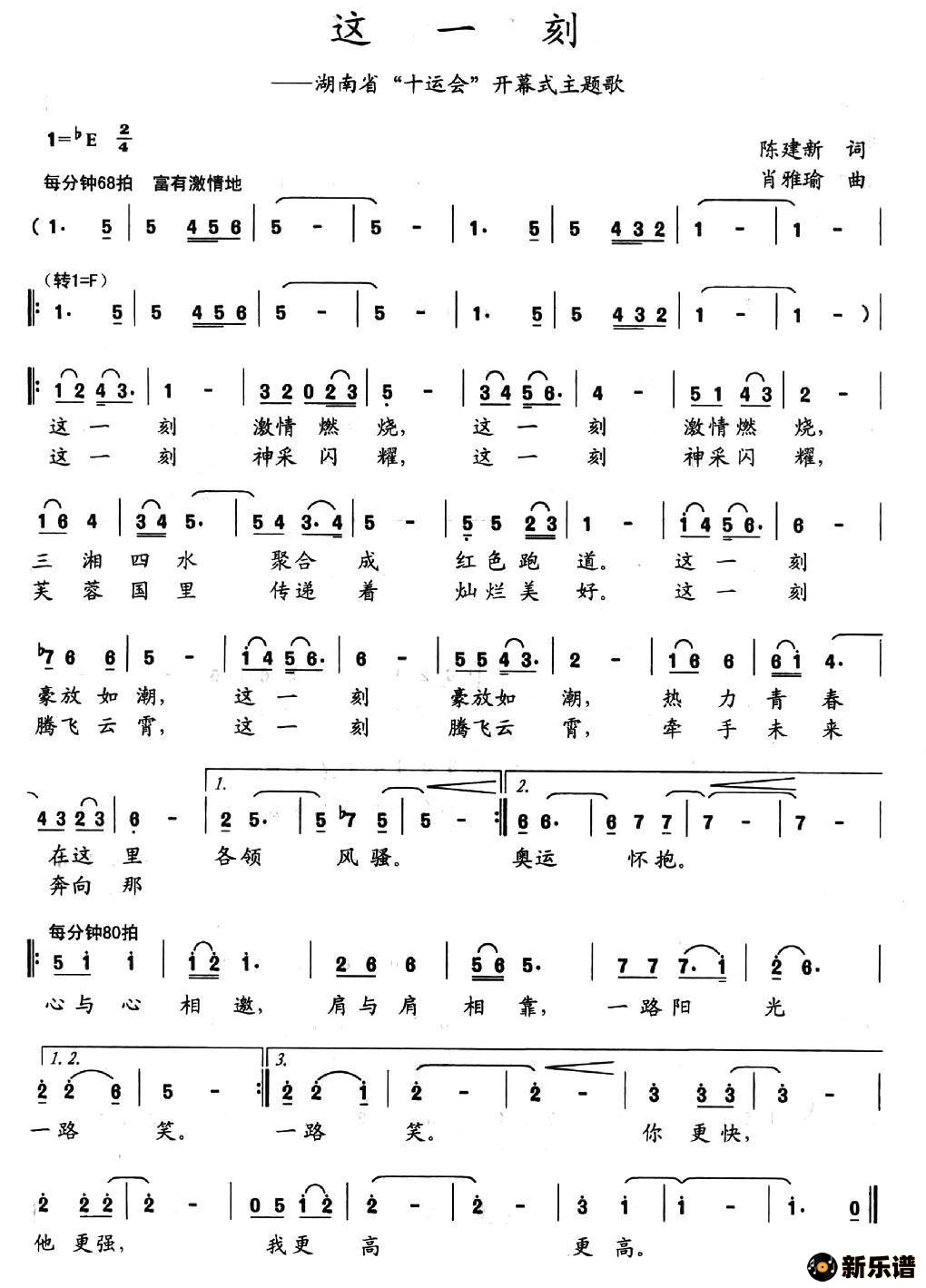 > 这一刻(湖南省“十运会”开幕式主题歌)简谱