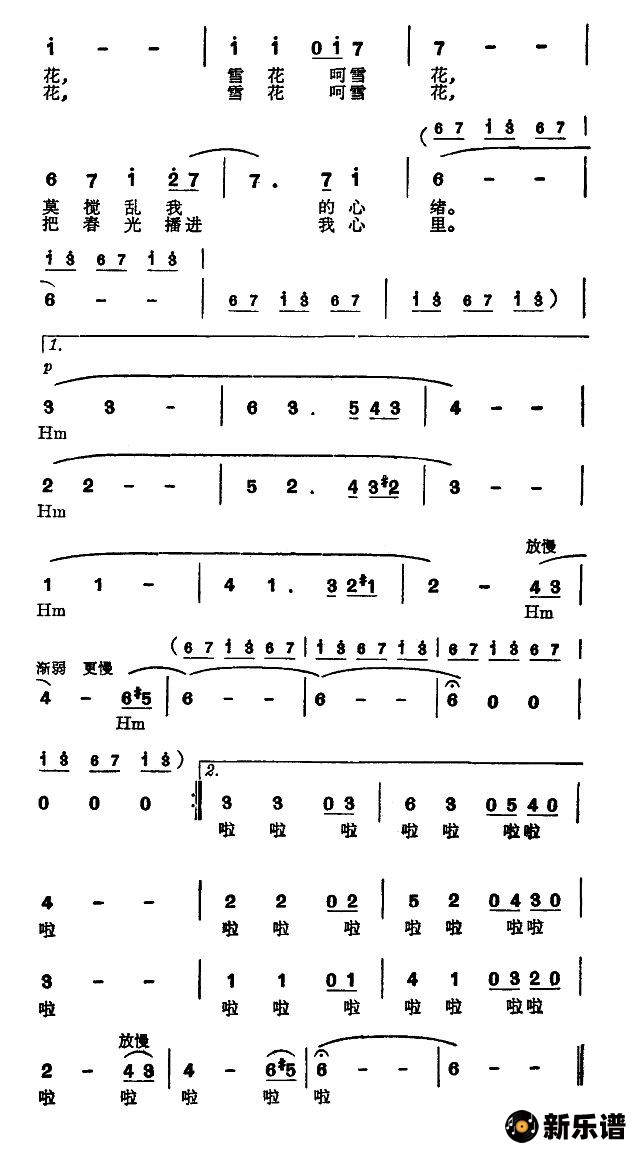 《雪花(电视片《雪花青青飘》主题歌)》简谱 -小叶子制谱