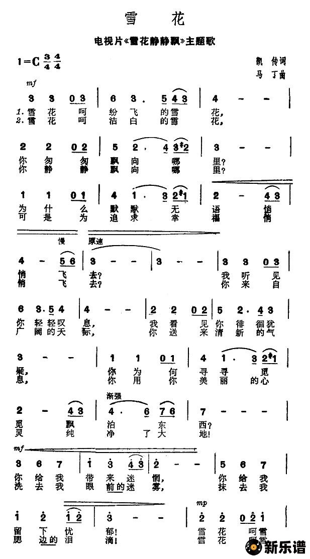 雪花(电视片《雪花青青飘》主题歌)/ 相关曲谱