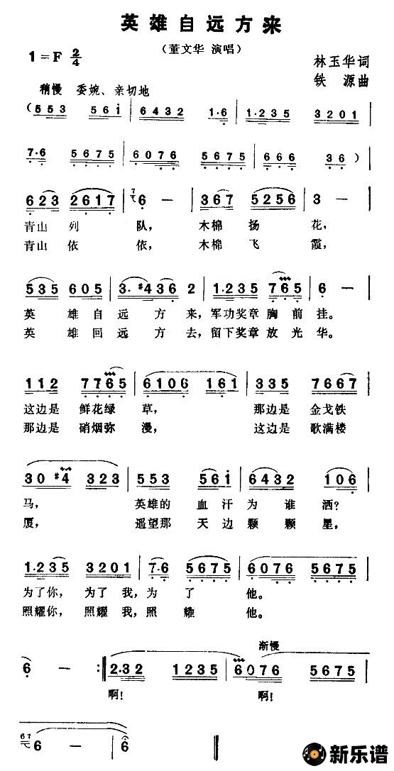 董文华演唱的英雄自远方来歌词,英雄自远方来简谱.