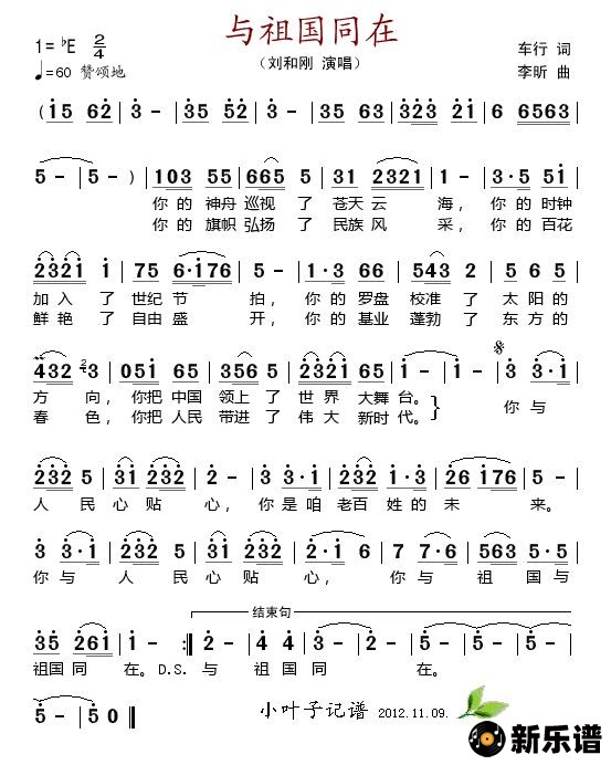《与祖国同在》简谱 刘和刚-小叶子制谱