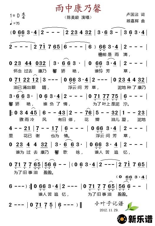 《雨中康乃馨》简谱 陈美龄-小叶子制谱