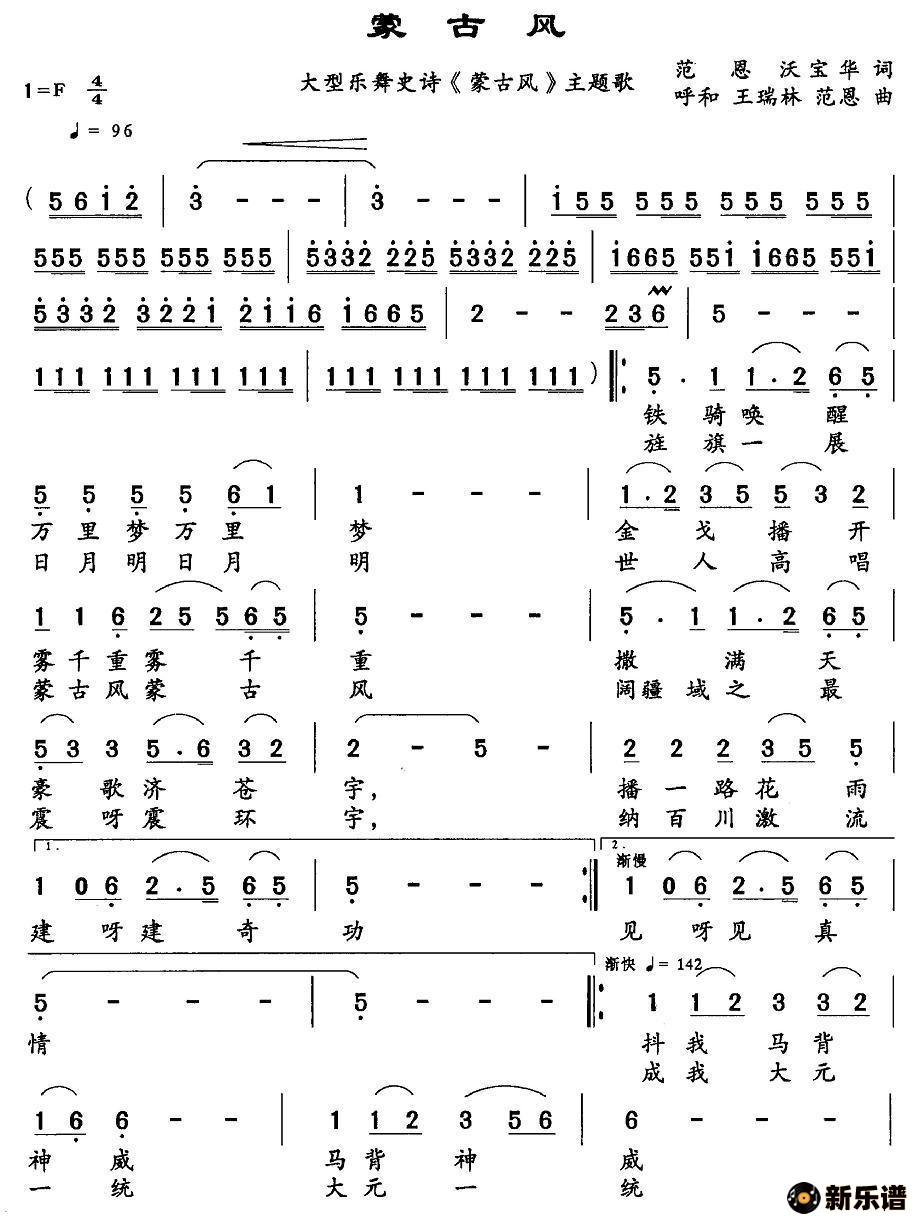 演唱的蒙古风(大型乐舞史诗歌《蒙古风》主题歌)歌词,蒙古风(大型乐舞史诗歌《蒙古风》主题歌)简谱.