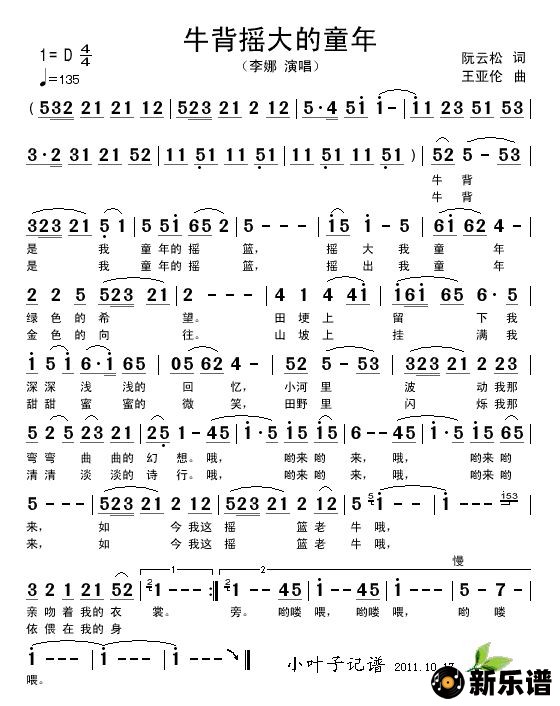 《牛背摇大的童年》简谱 李娜-小叶子制谱
