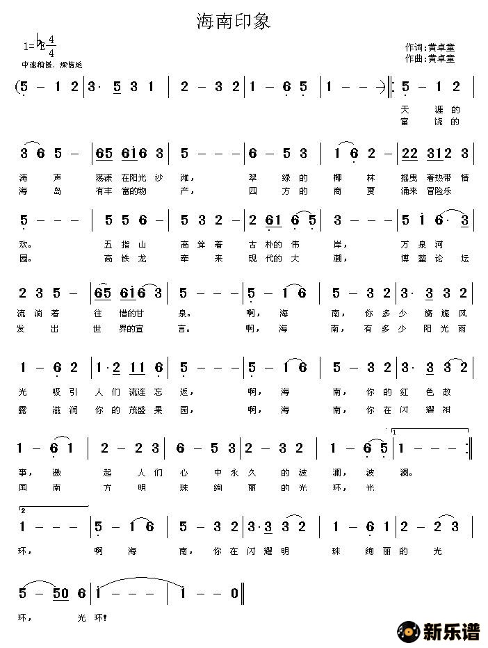 海南印象(卓童词曲)/杨燕婷 相关曲谱