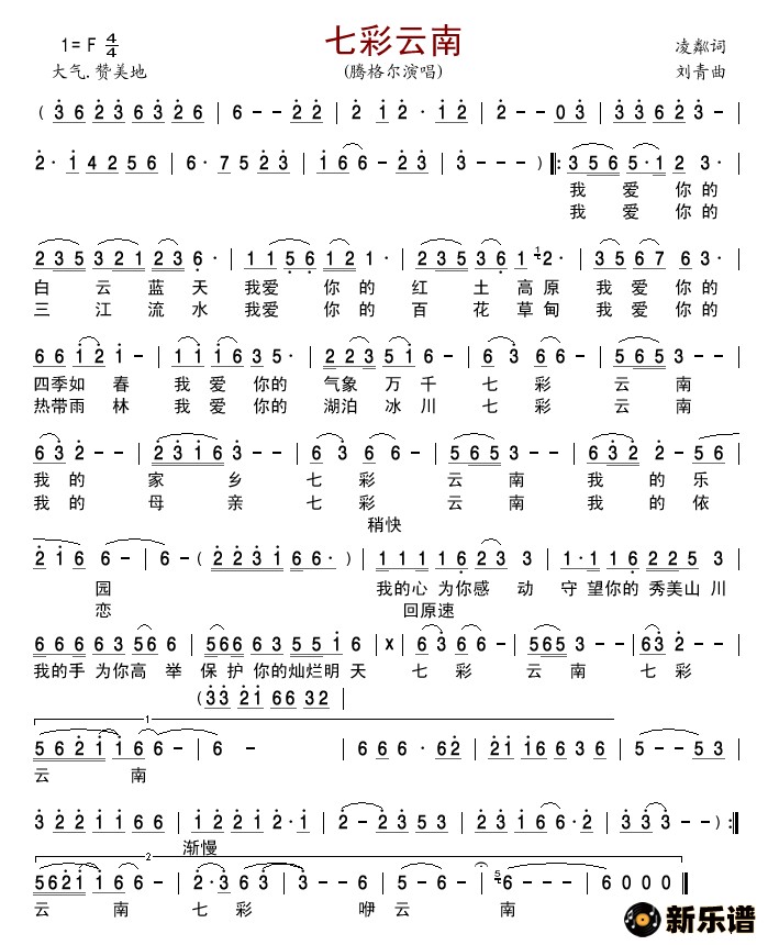 腾格尔演唱的七彩云南歌词,七彩云南简谱.