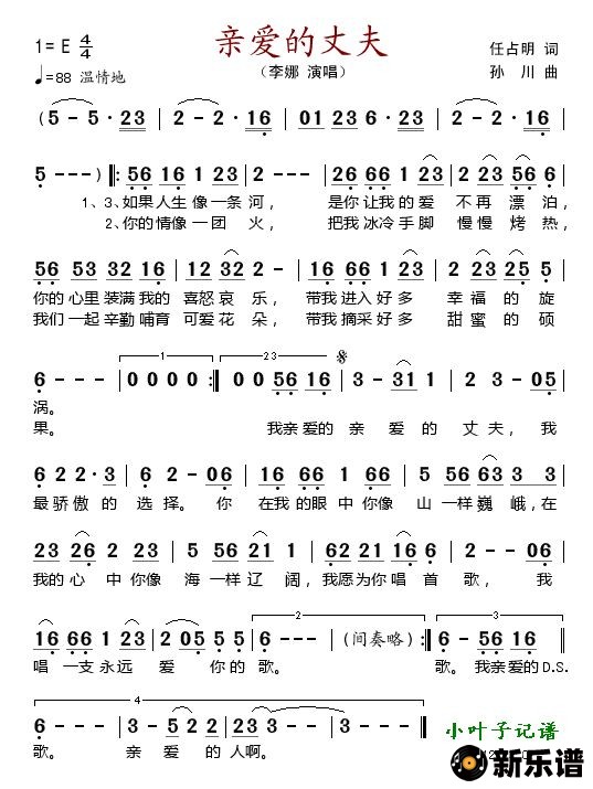 《亲爱的丈夫》简谱 李娜-小叶子制谱