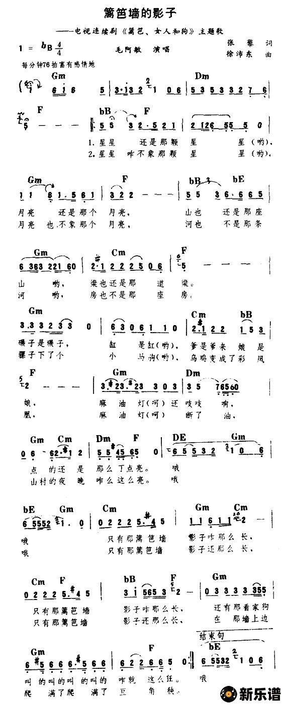毛阿敏演唱的篱笆墙的影子-毛阿敏歌词,篱笆墙的影子-毛阿敏简谱.