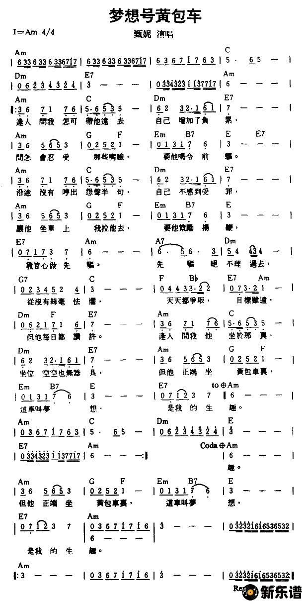 《梦想号黄包车》简谱 甄妮-小叶子制谱