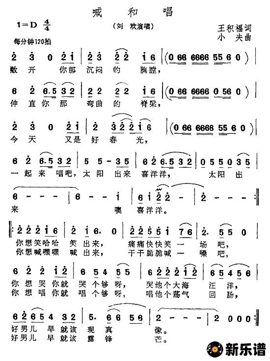 刘欢演唱的喊和唱歌词,喊和唱简谱.