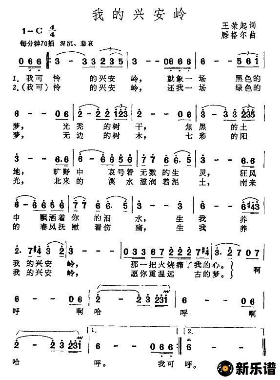 《我的兴安岭》简谱 滕格尔-小叶子制谱