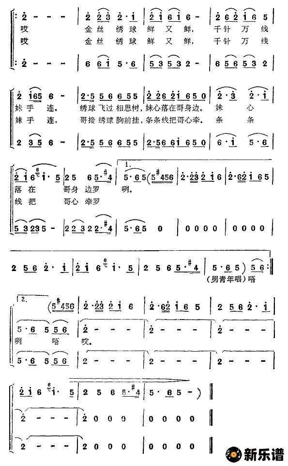 《想妹一天又一天》简谱 男女对唱-小叶子制谱