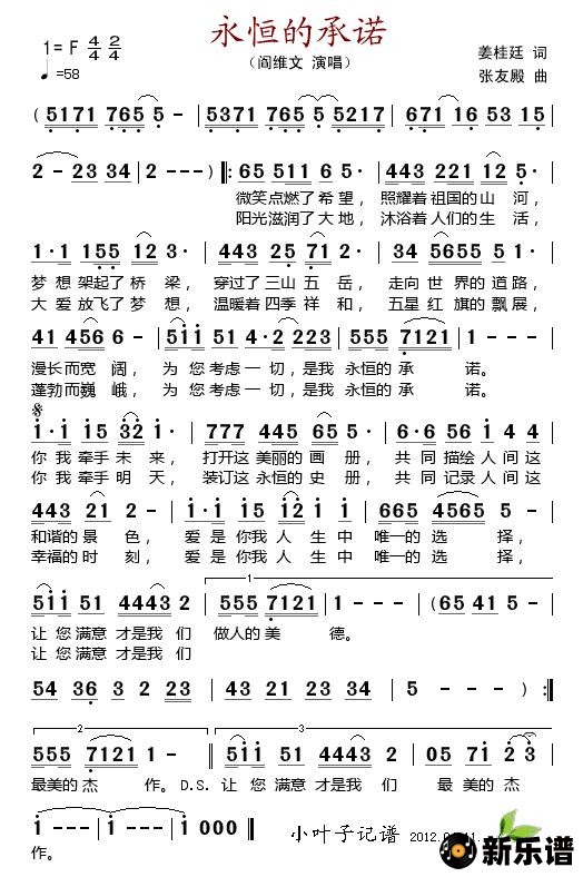 《永恒的承诺(阎维文)》简谱 阎维文-小叶子制谱