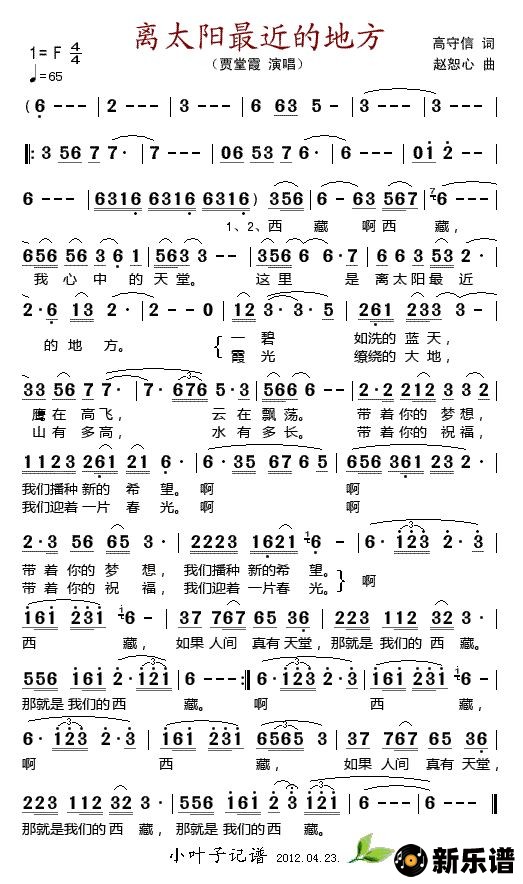 《离太阳最近的地方-贾堂霞》简谱 贾堂霞-小叶子制谱