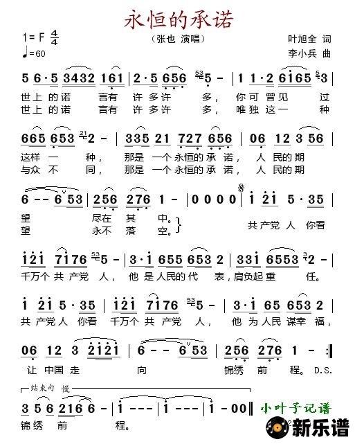 张也演唱的永恒的承诺(张也)歌词,永恒的承诺(张也)简谱.