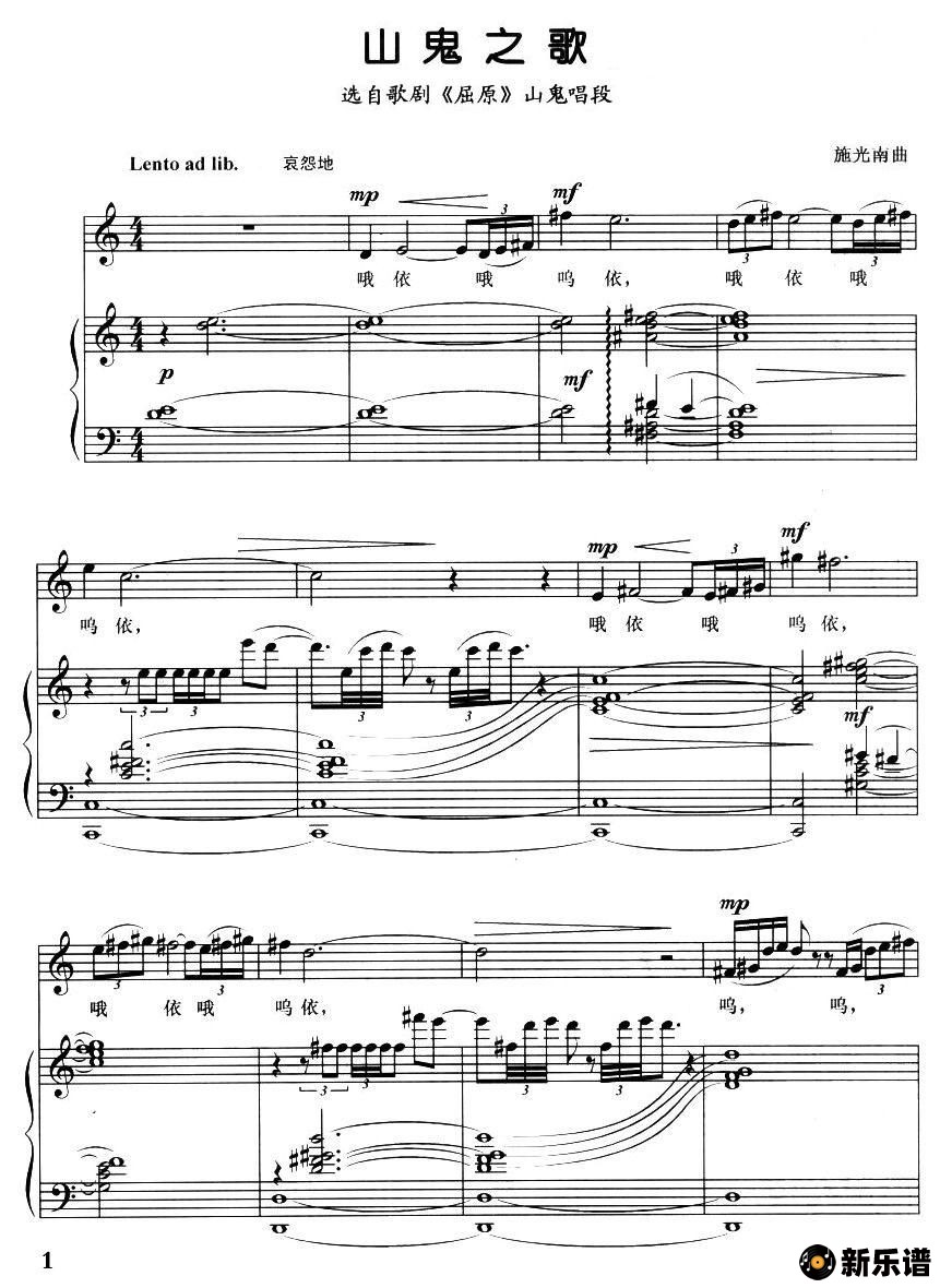 黄华丽演唱的山鬼之歌(歌剧《屈原》选曲)1-3页歌词,山鬼之歌(歌剧《屈原》选曲)1-3页简谱.
