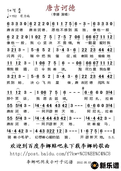 《唐吉诃德》简谱 李娜-小叶子制谱