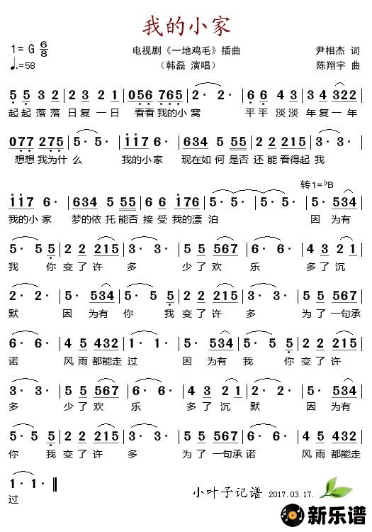 《我的小家(电视剧《一地鸡毛》插曲)》简谱 韩磊-小叶子制谱