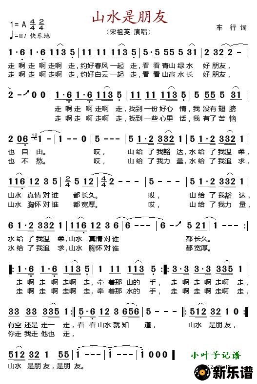 《山水是朋友-宋祖英》简谱 宋祖英-小叶子制谱