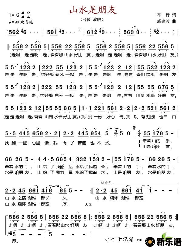 《山水是朋友》简谱 吕薇-小叶子制谱
