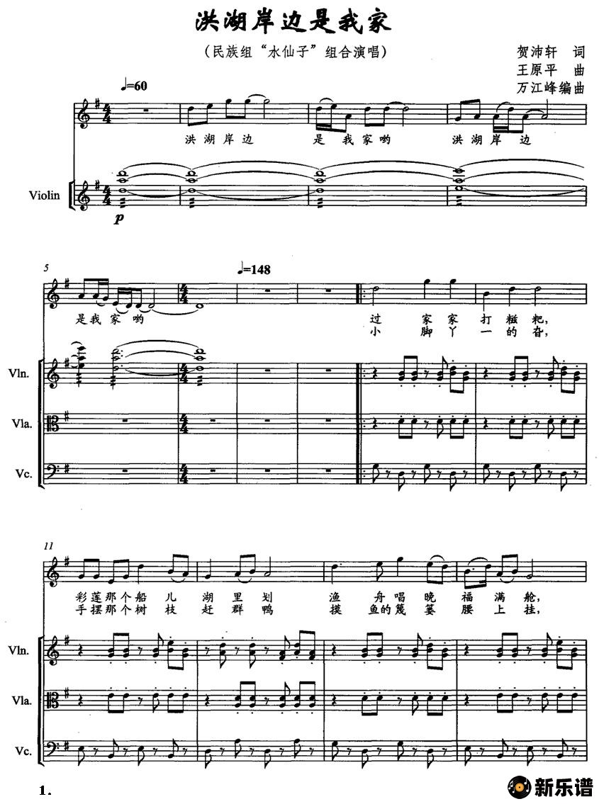 水仙子组合演唱的洪湖岸边是我家(钢琴伴奏谱)万江峰编曲歌词,洪湖岸边是我家(钢琴伴奏谱)万江峰编曲简谱.