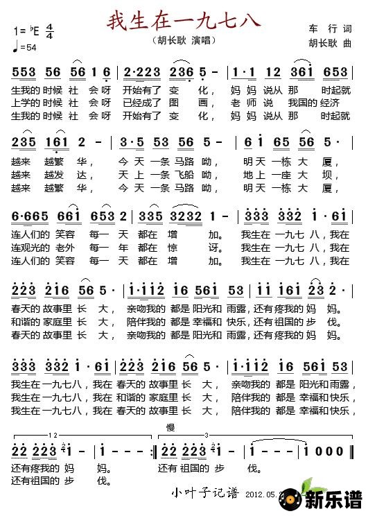 《我生在一九七八-胡长耿》简谱 胡长耿-小叶子制谱