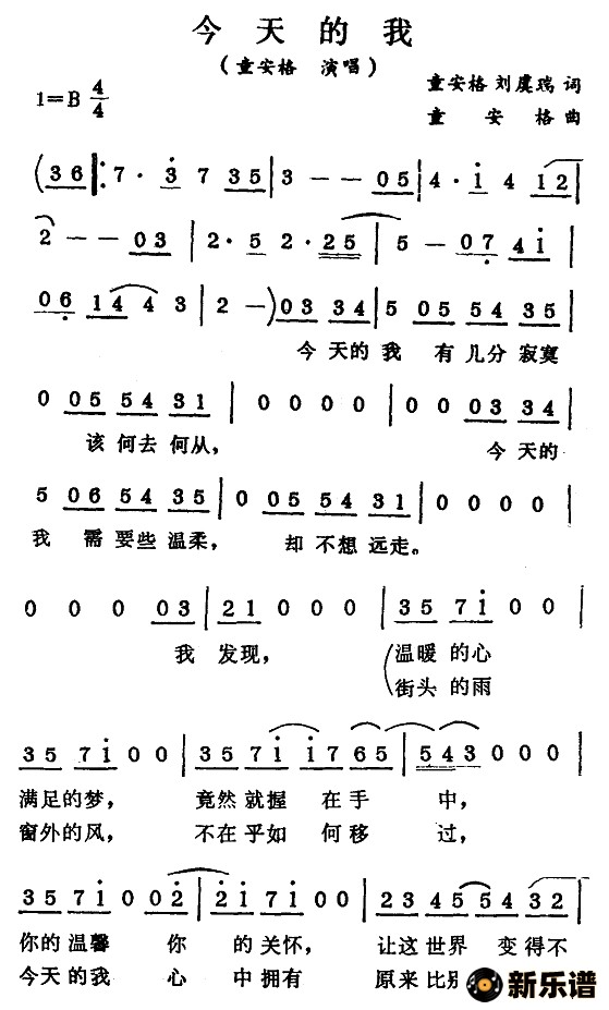 童安格演唱的今天的我-童安格歌词,今天的我-童安格简谱.