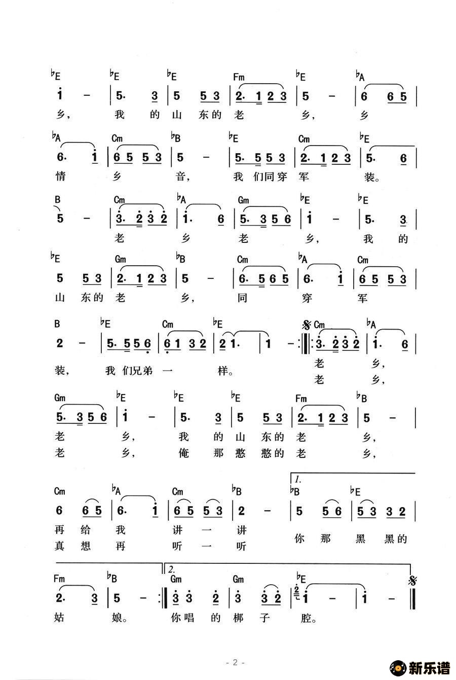 山东老乡(张昆鹏词曲)/万钧 相关曲谱