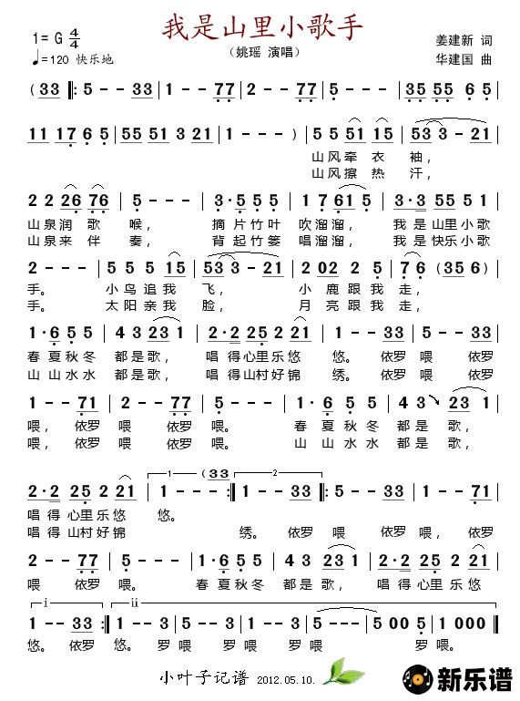 《我是山里小歌手(华建国作曲)》简谱 姚瑶-小叶子制谱
