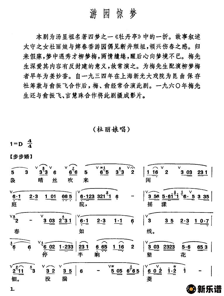 梅兰芳/俞振飞演唱的游园惊梦歌词,游园惊梦简谱.