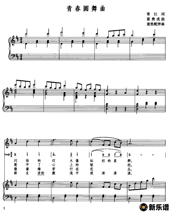 演唱的青春圆舞曲(崔贵戍作曲)歌词,青春圆舞曲(崔贵戍作曲)简谱.