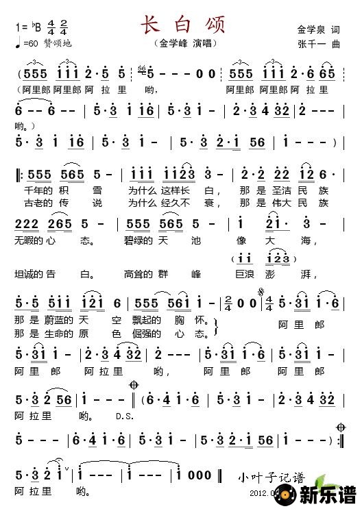 《长白颂-金学峰》简谱 金学峰-小叶子制谱