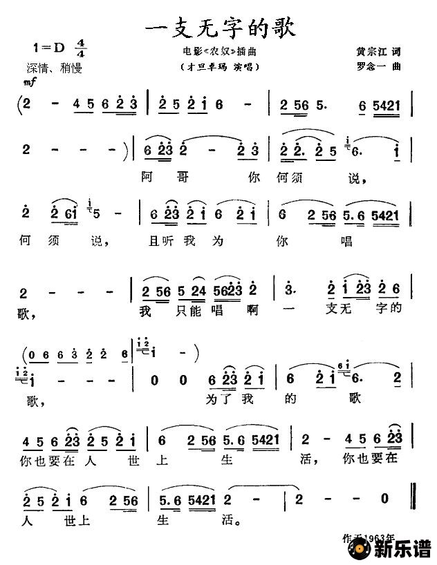 一支无字的歌(电影《农奴》插曲)/才旦卓玛 相关曲谱