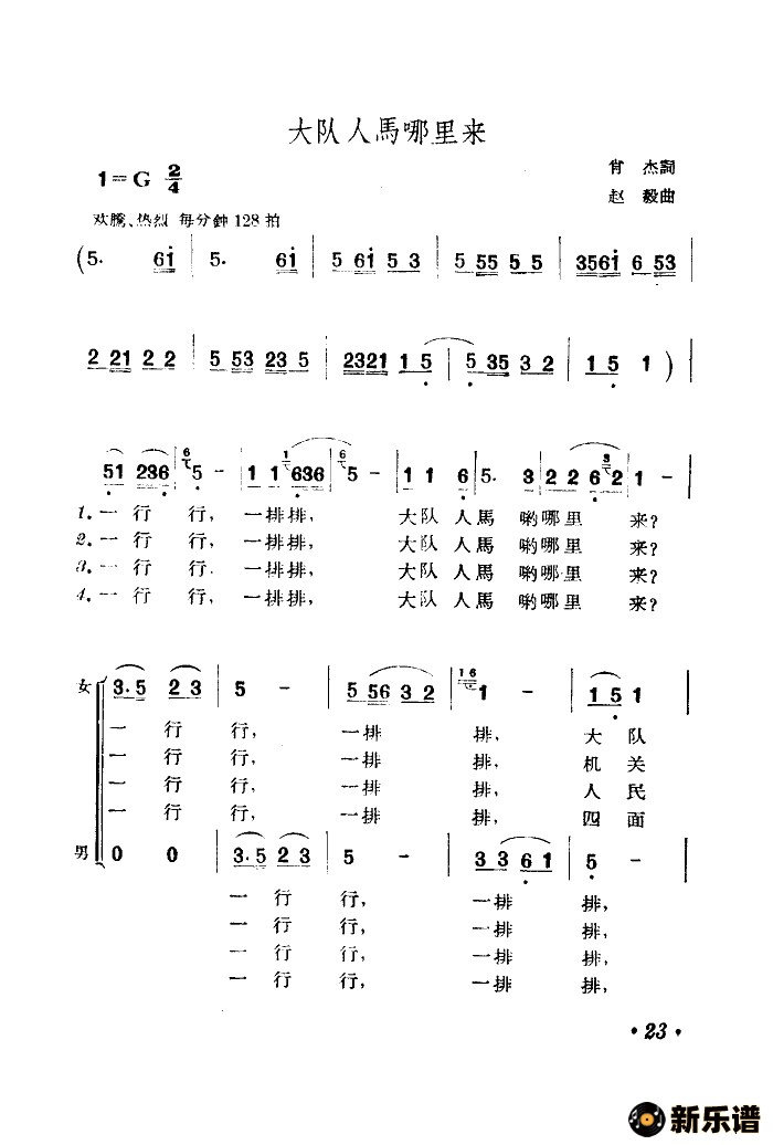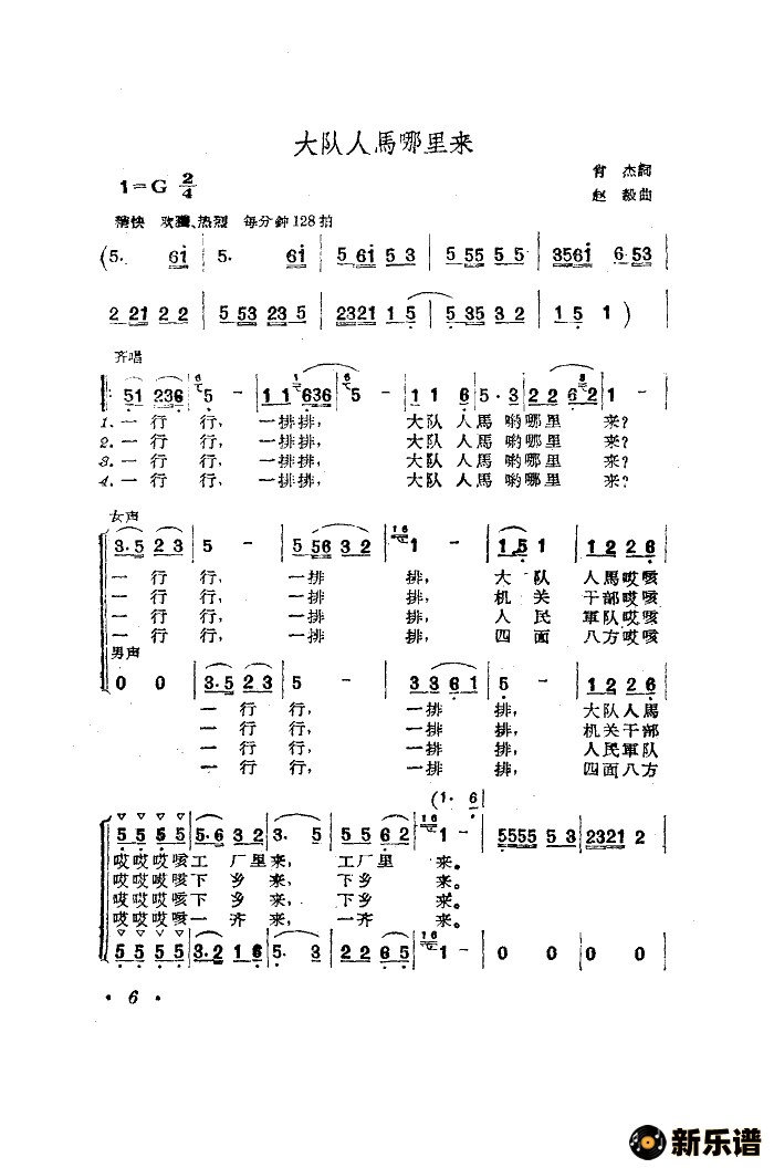 《大队人马哪里来》简谱 河南郑州艺术学院