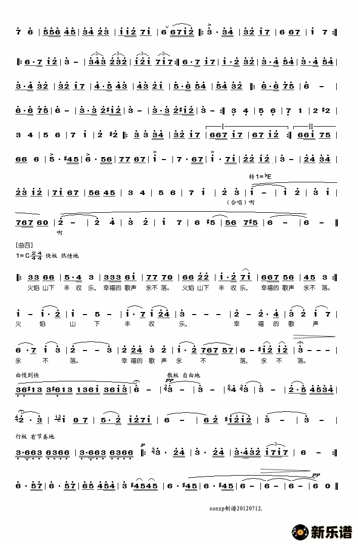 《葡萄架下(舞蹈音乐)》简谱 新疆部队政治部文工团