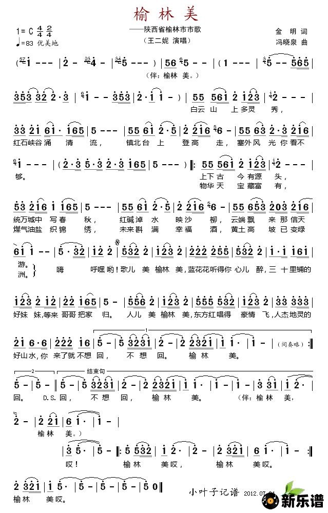 王二妮演唱的榆林美歌词,榆林美简谱.