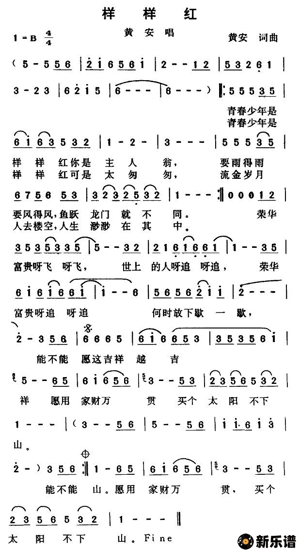 黄安演唱的样样红歌词,样样红简谱.