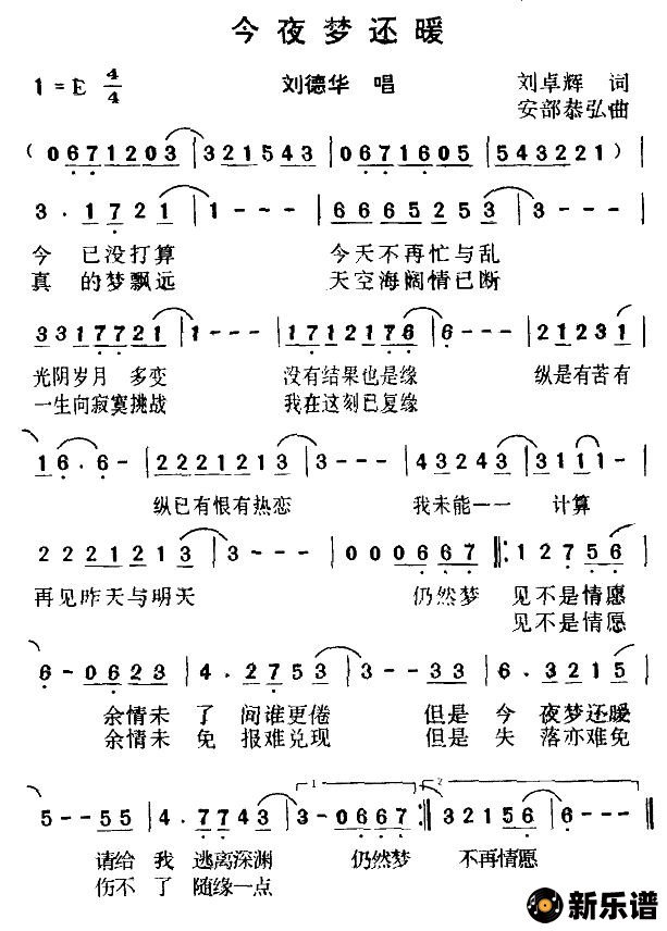 刘德华演唱的今夜梦还暖歌词,今夜梦还暖简谱.