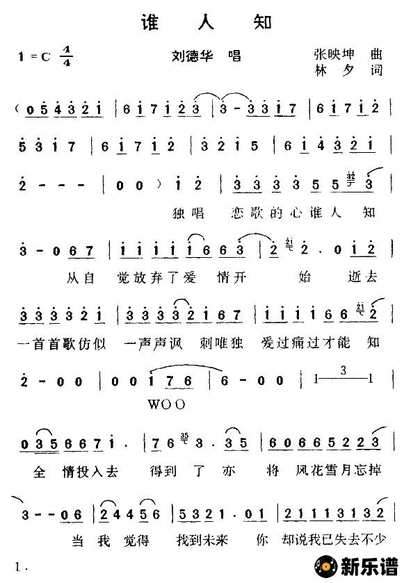 《谁人知》简谱 刘德华-小叶子制谱