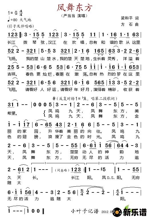 严当当演唱的凤舞东方歌词,凤舞东方简谱.
