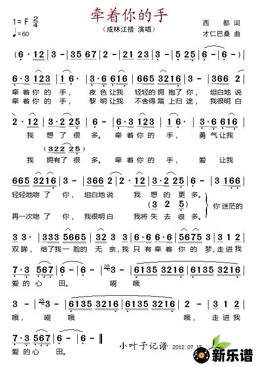 《牵着你的手-成林江措》简谱 成林江措-小叶子制谱