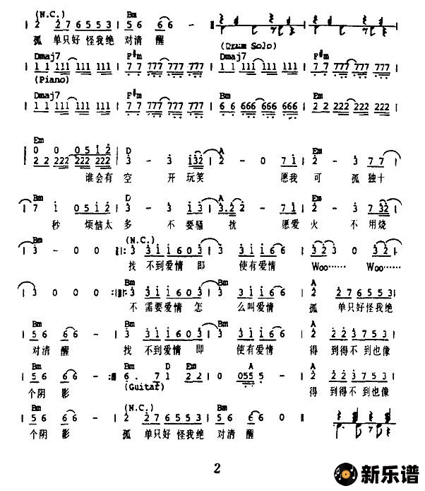 《不需要爱情》简谱 刘德华-小叶子制谱