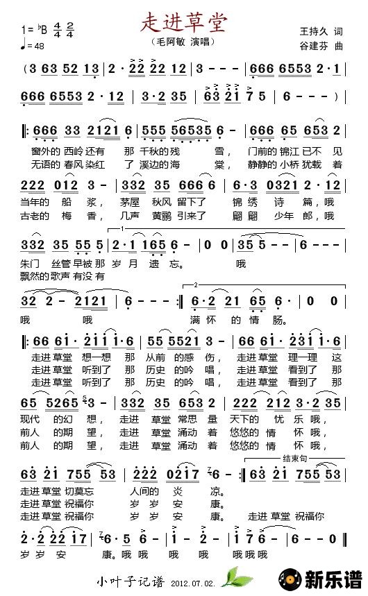 《走进草堂》简谱 毛阿敏-小叶子制谱